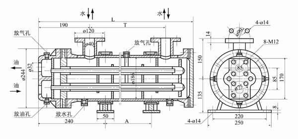 2LQG2W型(固定管板式)冷卻器外形圖及尺寸